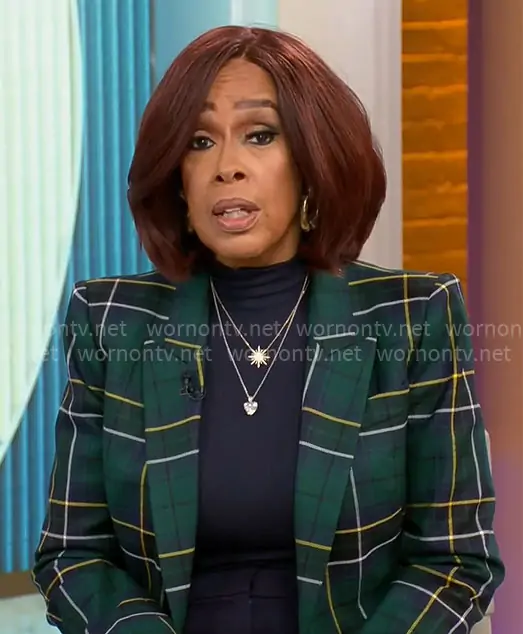 Gayle King on CBS Mornings on CBS was spotted wearing this green plaid blazer on CBS Mornings on Dec 08 2025's episode. Gayle's Jacket is the Tartan Peak Shoulder Wool Blazer by McQueen .