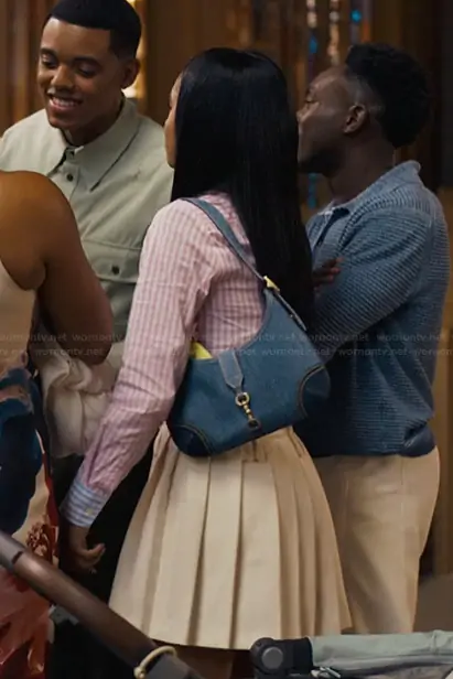 Ashley Banks (played by Akira Akbar) on Bel-Air on Peacock was spotted wearing this gingham check shirt and bag on Bel-Air on episode 'The Next Act' (4x08) in Dec 2025. Ashley's Top is the The Icon Shirt in Large Check by The Shirt by Rochelle Behrens . Ashley's Bag is the Denim Hamptons Hobo Bag by Coach.