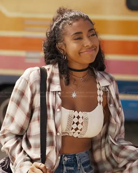 Amira (played by Alycia Pascual-Pena) on Bel-Air on Peacock was spotted wearing this pink sandals on Bel-Air on episode 'The Next Act' (4x08) in Dec 2025. 's Bralette is the Boho Eye Lace Top by TD Collections . 's Shorts is the Cutoff Denim Shorts by Lauren Ralph Lauren . 's Shoes is the Enola Sporty Casual Sandal by Schutz . 's Bag is the Quilted Mini Bag by Cos.