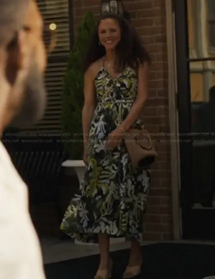 Penelope (played by Lenora Crichlow) on Bel-Air on Peacock was spotted wearing this floral print dress on Bel-Air on episode 'The Next Act' (4x08) in Dec 2025. 's Dress is the Braided-Trim Halter Maxi Dress by On 34th.