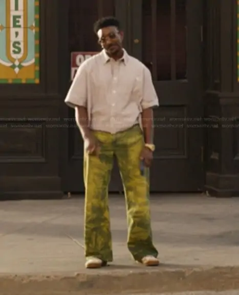Jazz (played by Jordan L. Jones) on Bel-Air on Peacock was spotted wearing this green acid dye jeans on Bel-Air on episode 'The Next Act' (4x08) in Dec 2025. Jazz's Pants is the High-rise straight jeans by Acne Studios.