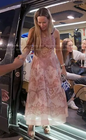 Britani Bateman on The Real Housewives of Salt Lake City on Bravo was spotted wearing this pink print cutout dress on The Real Housewives of Salt Lake City on episode 'Greek for the Week' (6x13) in Dec 2025. Britani's Dress is the Crush Twist Front Midi Dress by Zimmermann . Britani's Bag is the Cabata Leather Tote by Christian Louboutin.