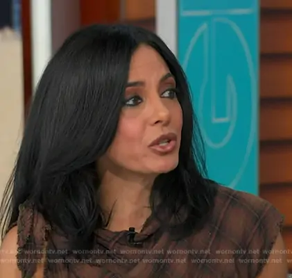 Dr. Tara Narula on Good Morning America on ABC was spotted wearing this brown plaid dress on Good Morning America on Dec 10 2025's episode. Tara's Dress is the Naerys Plaid Midi Dress by Isabel Marant Etoile.