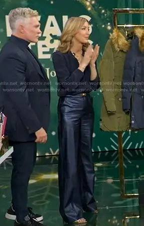 Ramy Brook Bella Croc-Embossed Faux Leather Wide-Leg Pants worn by Lara Spencer on Good Morning America