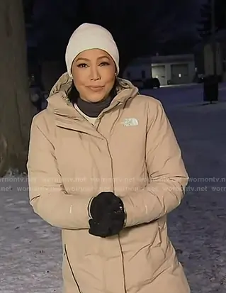 Stephanie Ramos on Good Morning America on ABC was spotted wearing this beige hooded coat on Good Morning America on Dec 11 2025's episode. Stephanie's Coat is the Arctic Parka by The North Face.