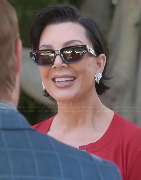 Kris Jenner (played by Kris Jenner) on The Kardashians on Hulu was spotted wearing this black rectangle sunglasses on The Kardashians on episode 'Stay The F*** Away From Me' (7x08) in Dec 2025. Kris's Sunglasses is the Rectangle Frame Sunglasses by Bottega Veneta.