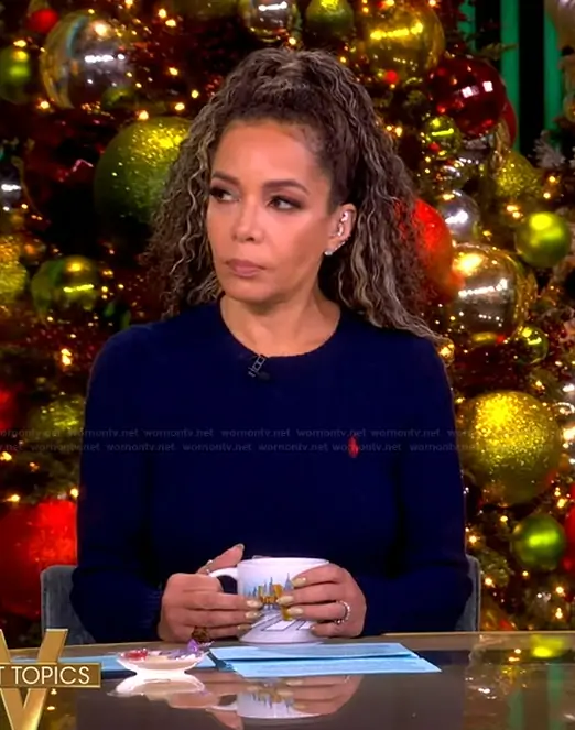 Sunny Hostin on The View on ABC was spotted wearing this blue cable knit dress on The View on Dec 11 2025's episode. Sunny's Dress is the Crew Neck Long Sleeve Fit & Flare Dress by Ralph Lauren.