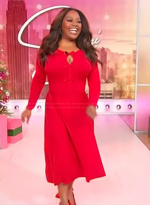 Sherri Shepherd on Sherri on FOX was spotted wearing this red bow detail dress on Sherri on Dec 11 2025's episode. Sherri's Dress is the Bow Midi Dress by Carolina Herrera.