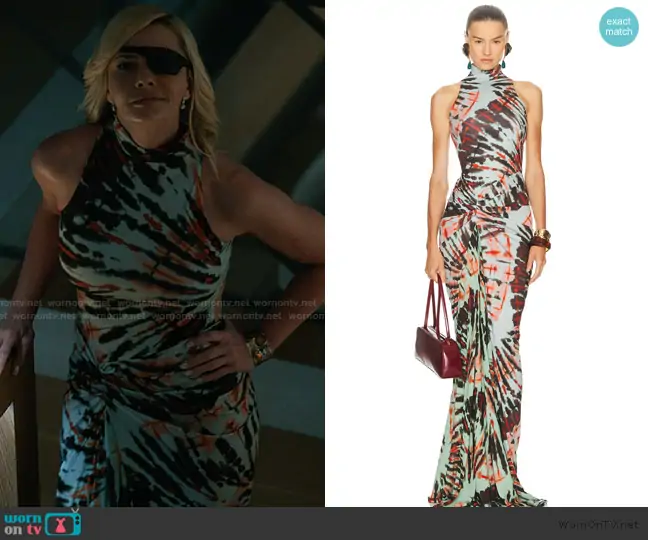 Tiff (played by Jaime Pressly) on Elsbeth on CBS was spotted wearing this tie dye sleeveless dress on Elsbeth on episode 'Glamazons' (3x09) in Dec 2025. 's Dress is the Frances Printed Twist Mermaid Gown by Silvia Tcherassi.