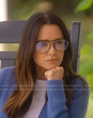 Kyle Richards on The Real Housewives of Beverly Hills on Bravo was spotted wearing this aviator glasses on The Real Housewives of Beverly Hills on episode 'Bearing It All' (15x02) in Dec 2025. Kyle's Glasses is the Blue Block Opticals Glasses by Tom Ford . Kyle's Shoes is the Bouncing Sneaker in Black / White by Hermes.