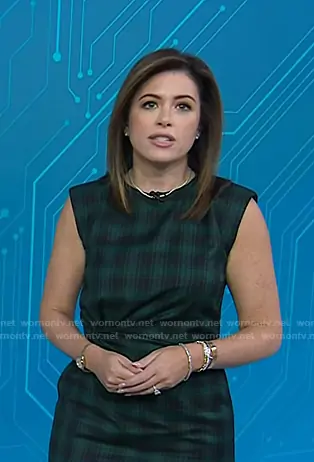 Ann Taylor Plaid Twist Sheath Dress in Ponderosa Pine worn by Chloe Melas on Today