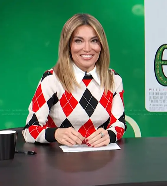 Kit Hoover on Access Hollywood on NBC was spotted wearing this argyle knit sweater on Access Hollywood on Dec 12 2025's episode. Kit's Sweater is the Carolann Argyle Pullover by Alice + Olivia . Kit's Pants is the Robertson Flare Hem Pants by Derek Lam 10 Crosby.
