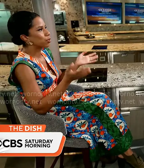 Adriana Diaz’s abstract print ruched dress on CBS Mornings
