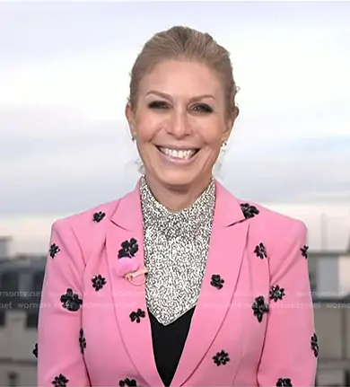Jill Martin on Today on NBC was spotted wearing this pink floral blazer on Today on Dec 15 2025's episode. Jill's Collar is the Crystal Embellished Detachable Collar by TWP . Jill's Jacket is the Cheyenne Crystal Flower Embellished Blazer by Cinq a Sept.