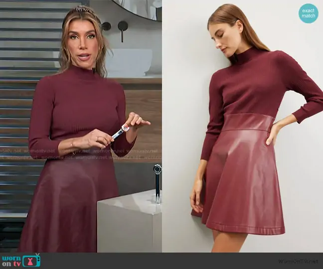 on Access Hollywood on NBC was spotted wearing this burgundy mixed media dress on Access Hollywood on Dec 16 2025's episode. 's Dress is the Alexa Dress by Shoshanna.