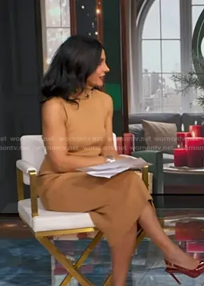 Dr. Tara Narula on Good Morning America on ABC was spotted wearing this beige sleeveless turtleneck dress on Good Morning America on Dec 16 2025's episode. Tara's Dress is the Tie Front Turtleneck Dress by Toccin.