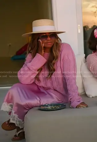 Mary Cosby on The Real Housewives of Salt Lake City on Bravo was spotted wearing this pink cable knit sweater and satin skirt on The Real Housewives of Salt Lake City on episode 'My Big Fat Greek Mother's Day' (6x14) in Dec 2025. Mary's Sweater is the Sydney Cable-Knit Sweater by Sablyn . Mary's Skirt is the Miranda Bias-Cut Silk Skirt in Orchid by Sablyn.