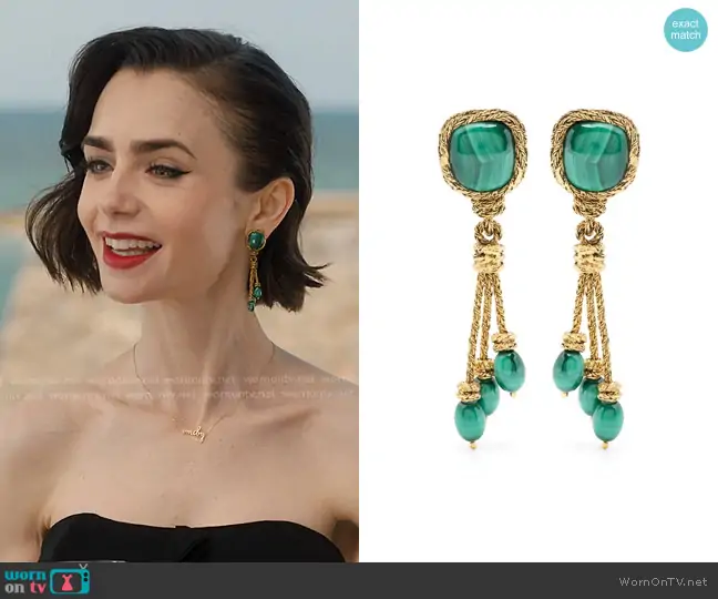 Sylvie (played by Philippine Leroy-Beaulieu) on Emily in Paris on Netflix was spotted wearing this brown gathered off shoulder dress on Emily in Paris on episode 'Rome Has Fallen' (5x04) in Dec 2025. Sylvie's Dress is the Asymmetric Ruched Off-Shoulder Midi Dress by Alaia.