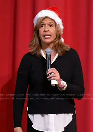 Hoda Kotb on Today on NBC was spotted wearing this black layered sweater on Today on Dec 17 2025's episode. Hoda's Sweater is the 100% Cashmere Layered Look Sweater by C by Bloomingdale's Cashmere.