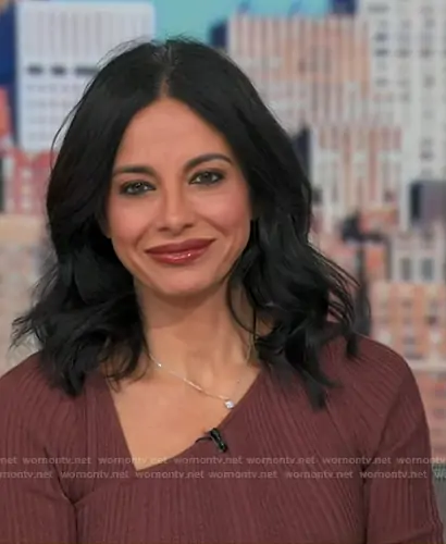 Dr. Tara Narula on Good Morning America on ABC was spotted wearing this brown ribbed asymmetric dress on Good Morning America on Dec 17 2025's episode. Tara's Dress is the Amira Ribbed Knit Midi Dress by Staple The Label.