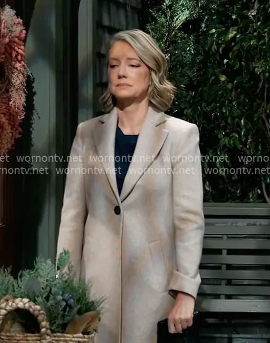 Nina Reeves (played by Cynthia Watros) on General Hospital on ABC was spotted wearing this beige coat on General Hospital on Dec 19 2025's episode. Nina's Coat is the Wool Blend Coat by Zara.