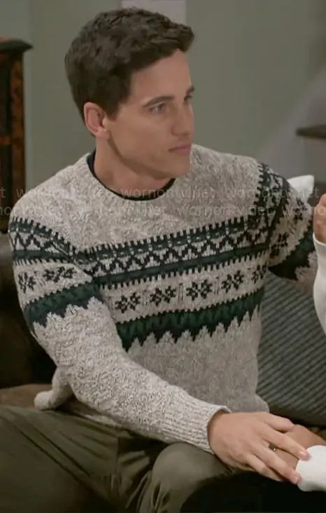 Bradley 'Smitty' Smith (played by Mike Manning) on Beyond the Gates on CBS was spotted wearing this fair isle print sweater on Beyond the Gates on Dec 22 2025's episode. Smitty's Sweater is the Cotton Fair Isle Sweater by Brooks Brothers.