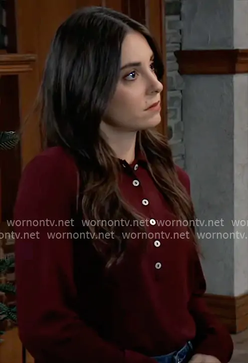 Molly Lansing-Davis (played by Kristen Vaganos) on General Hospital on ABC was spotted wearing this dark red polo shirt on General Hospital on Dec 22 2025's episode. Molly's Top is the Plain Knit Polo Shirt in Maroon by Zara.