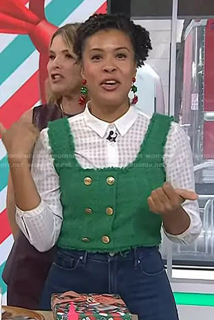 on Today on NBC was spotted wearing this green tweed vest top on Today on Dec 23 2025's episode. 's Vest is the Tweed Vest by Maeve.