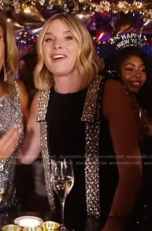 Jenna Bush Hager on Today on NBC was spotted wearing this black embellished bow strap dress on Today on Dec 29 2025's episode. Jenna's Dress is the Velvet Embellished Viola Dress in Black by Tuckernuck.