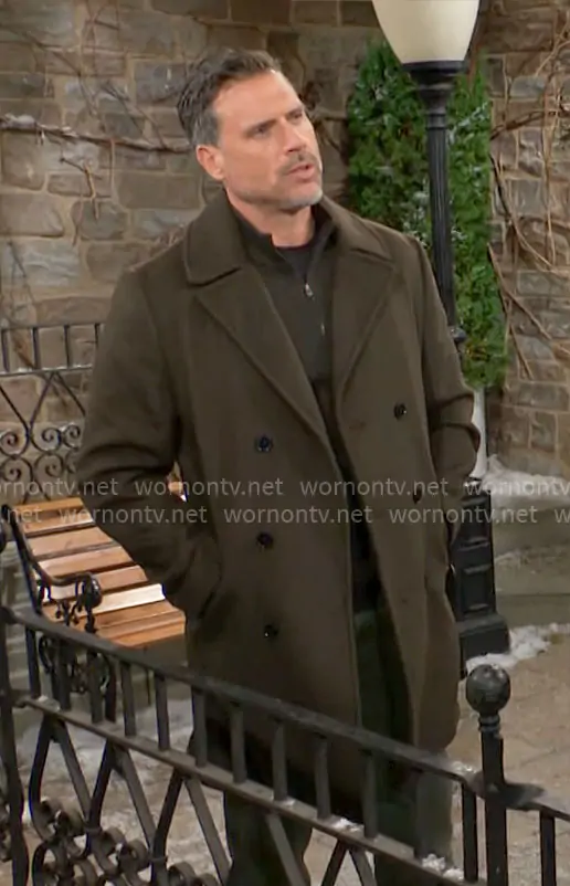 Nick Newman (played by Joshua Morrow) on The Young and the Restless on CBS was spotted wearing this olive green coat on The Young and the Restless on Dec 29 2025's episode. Nick's Coat is the Present Coat in Dark Green by Reiss.