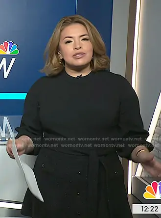on NBC News Daily on NBC was spotted wearing this black tweed knit dress on NBC News Daily on Dec 29 2025's episode. 's Dress is the Tanner Tweed Knit Dress in Jet by Shoshanna.