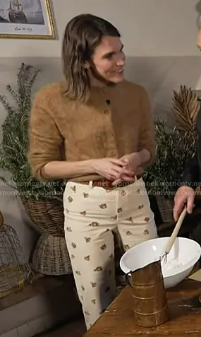 Molly Hunter on Today on NBC was spotted wearing this brown cardigan and floral print pants on Today on Dec 30 2025's episode. Molly's Sweater is the Pure Cashmere Cardigan in Light Brown by Stefanel . Molly's Pants is the The Wide Leg Trousers in Shilo Print by Sezane.