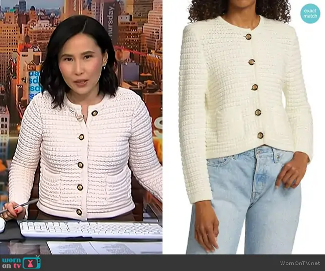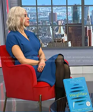 on NBC News Daily on NBC was spotted wearing this blue v-neck midi dress on NBC News Daily on Dec 31 2025's episode. 's Dress is the Blouson Sleeve Midi Dress in Sapphire Blue by Victoria Beckham.