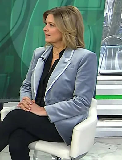 J. Crew Madelyn blazer in velvet in Slate Blue worn by Christine Romans on Today