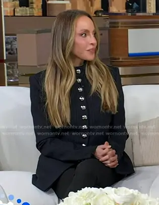 on Good Morning America on ABC was spotted wearing this pinstripe long jacket on Good Morning America on Jan 05 2026's episode. 's Jacket is the Samuel Jacket in Navy and White Stripe by Khaite.