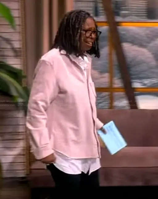 Whoopi Goldberg on The View on ABC was spotted wearing this pink button down overshirt on The View on Jan 06 2026's episode. Whoopi's Dress is the Sweatshirt Button-Up by Frank & Eileen.