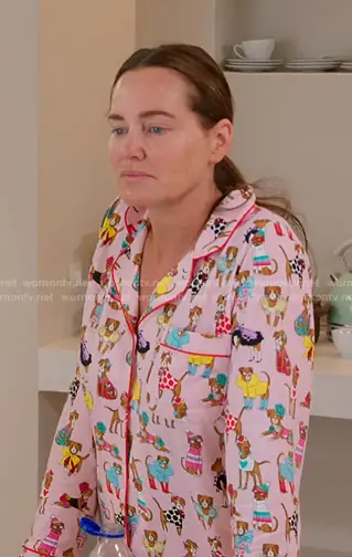 Meredith Marks on The Real Housewives of Salt Lake City on Bravo was spotted wearing this pink dog print pajamas on The Real Housewives of Salt Lake City on episode 'Sisters of Salt, A Greek Tragedy' (6x16) in Jan 2026. Meredith's Pajama Set is the Chic Boxers Long Sleeve Classic Stretch Jersey PJ Set by Bedhead x Bronwyn Newport.