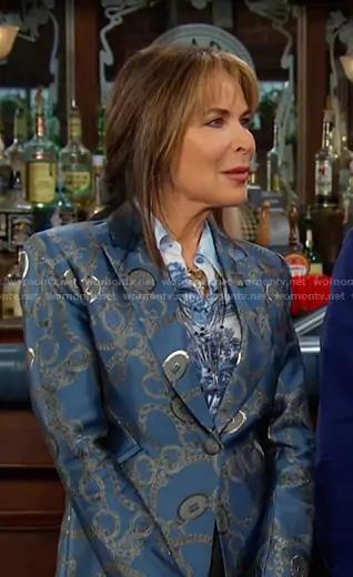 Kate Roberts (played by Lauren Koslow) on Days of our Lives on Peacock was spotted wearing this blue chain print blazer on Days of our Lives on Jan 07 2026's episode. Kate's Jacket is the Sheila Blazer in Blue Horizon/ Silver Good Luck by L'Agence.