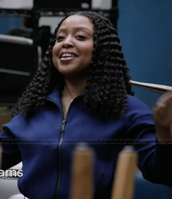 Janine Teagues (played by Quinta Brunson) on Abbott Elementary on ABC was spotted wearing this blue track jacket on Abbott Elementary on episode 'Mall' (5x09) in Jan 2026. Janine's Jacket is the Track Jacket Spanx.