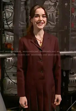 on Today on NBC was spotted wearing this burgundy plaid pleated blazer dress on Today on Jan 08 2026's episode. 's Dress is the Super 120's Twill Sporcoat Pleated Dress Runway Collection in Red by Thome Browne . 's Tights is the Funmix Argyle Sheer Tights in Red by Thome Browne.