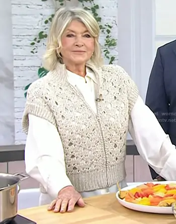 on Today on NBC was spotted wearing this open knit zip front cardigan on Today on Jan 08 2026's episode. 's Sweater is the High-Neck Paillette Round Open-Weave Zip Cashmere Cardigan by Brunello Cucinelli.