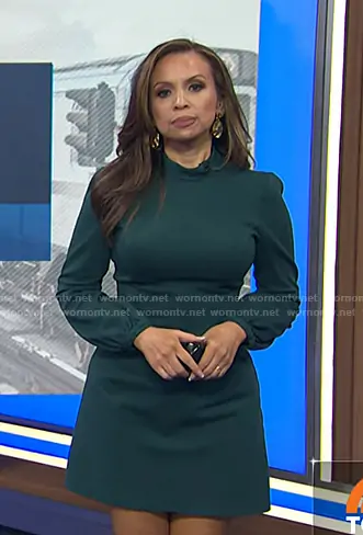 Adelle Caballero on Today on NBC was spotted wearing this teal long sleeve mini dress on Today on Jan 08 2026's episode. Adelle's Dress is the Indra Dress by Trina Turk.