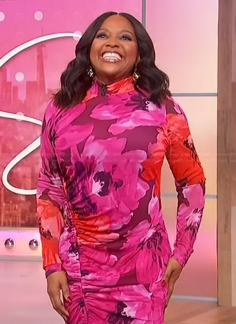 Sherri Shepherd on Sherri on FOX was spotted wearing this floral print ruched dress on Sherri on Jan 08 2026's episode. Sherri's Dress is the Long Sleeve Mesh Maxi Dress by Aqua.
