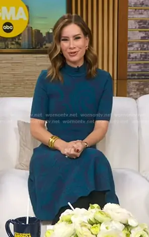 Rebecca Jarvis on Good Morning America on ABC was spotted wearing this blue paisley knit midi dress on Good Morning America on Jan 08 2026's episode. Rebecca's Dress is the Paisley A-Line Knit Midi-Dress in Petroleum by Etro.