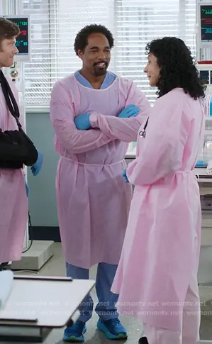 Dr. Ben Warren (played by ason George) on Greys Anatomy on ABC was spotted wearing this blue sneakers on Greys Anatomy on episode 'Skyfall' (22x07) in Jan 2026. 's Shoes is the Mach 6 in Virtual Blue/Bellwether Blue by Hoka.