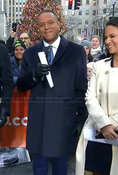 Craig Melvin on Today on NBC was spotted wearing this navy suede coat on Today on Jan 09 2026's episode. Craig's Coat is the Suri Alpaca Notched Lapel Overcoat in Deep Navy by Sentaler.