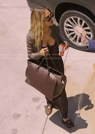 Dorit Kemsley on The Real Housewives of Beverly Hills on Bravo was spotted wearing this brown cardigan and leather tote on The Real Housewives of Beverly Hills on episode 'Housewives Heatwave' (15x04) in Jan 2026. Dorit's Sweater is the Finley Rib-Knit Crop Cardigan in olive by Jenni Kayne . Dorit's Sunglasses is the Kobo Square-frame Acetate Sunglasses by Jacques Marie Mage . Dorit's Shoes is the Mesh Ballerina Flats in brown by Alaia . Dorit's Bag is the Marlo 17 leather tote bag by The Row.