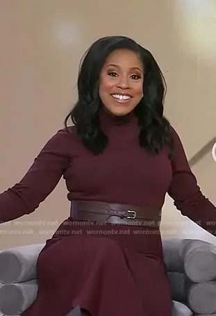 Sheinelle Jones on Today on NBC was spotted wearing this red belted knit dress on Today on Jan 12 2026's episode. Sheinelle's Dress is the Alicia Dress in Raspberry Red by Reiss.