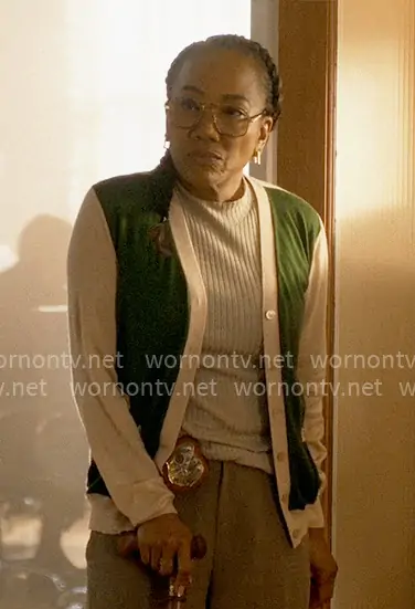 Amanda Wagner (played by Sonja Sohn) on Will Trent on ABC was spotted wearing this green colorblock cardigan on Will Trent on episode '... Speaking of Sharks' (4x01) in Jan 2026. Amanda's Sweater is the Cashmere Sweater by Marni.