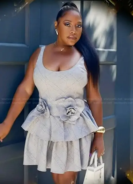 Sherri Shepherd on Sherri on FOX was spotted wearing this gray bow applique mini dress on Sherri on Jan 14 2026's episode. Sherri's Dress is the Devyn Plaid Fit & Flare Minidress by Aknvas.